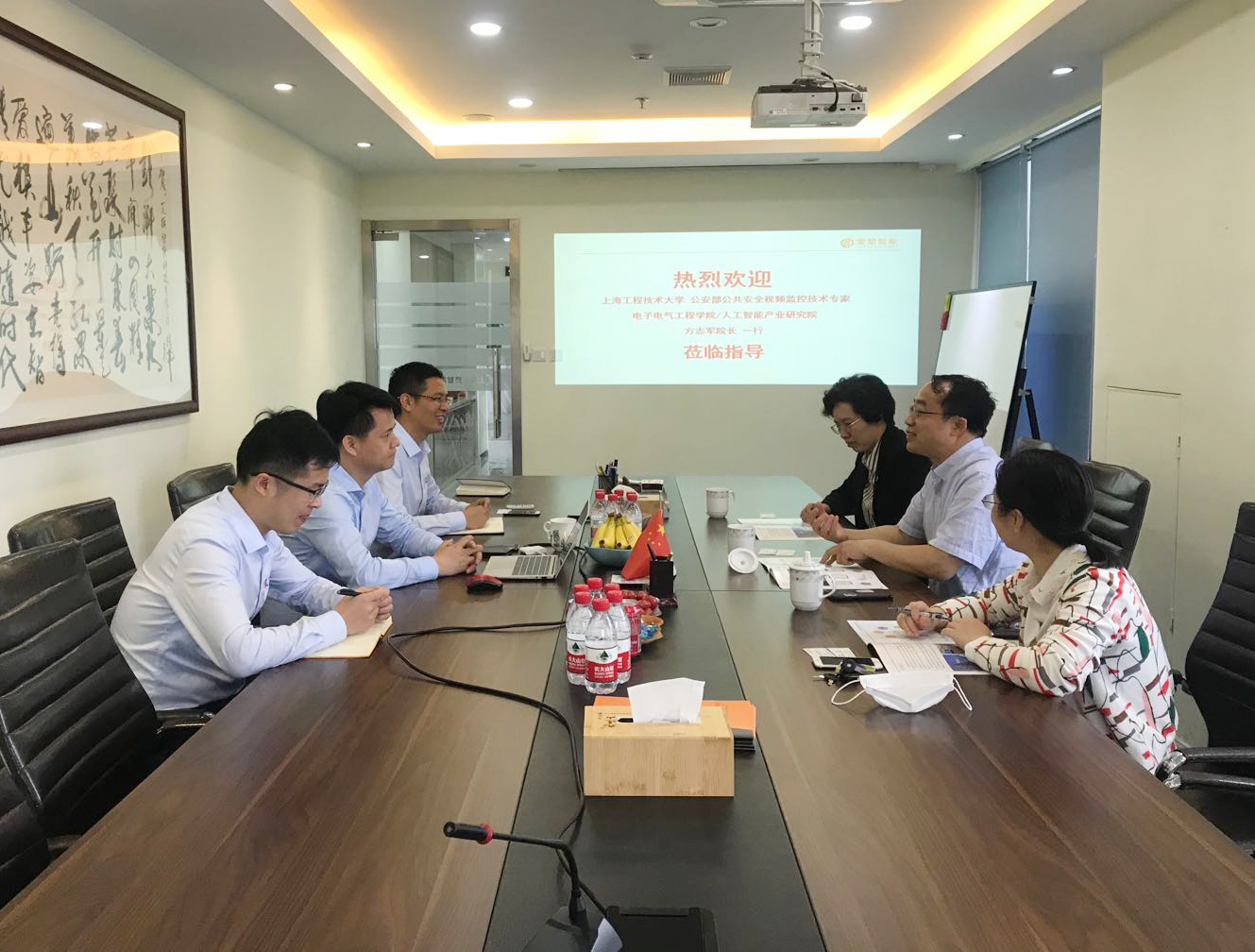 2020年5月26日,应上海爱堃智能系统有限公司董事长彭新开先生的邀请,上海工程技术大学电子电气工程学院兼人工智能产业研究院院长方志军教授一行莅临爱堃智能进行考察交流合作。