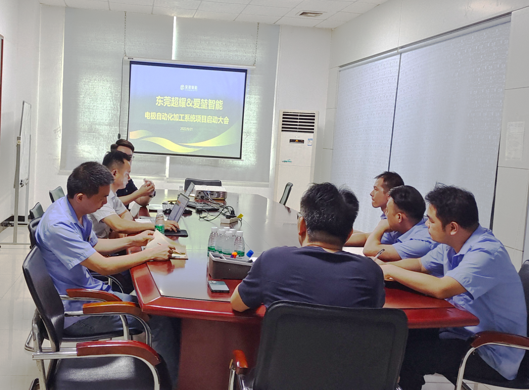 项目启动会上,爱堃智能项目团队对项目的总体实施计划、关键节点等几个方面进行详细介绍,双方就东莞超耀电极自动化方案细节进行了最后沟通和确认,并审核通过了项目实施计划。